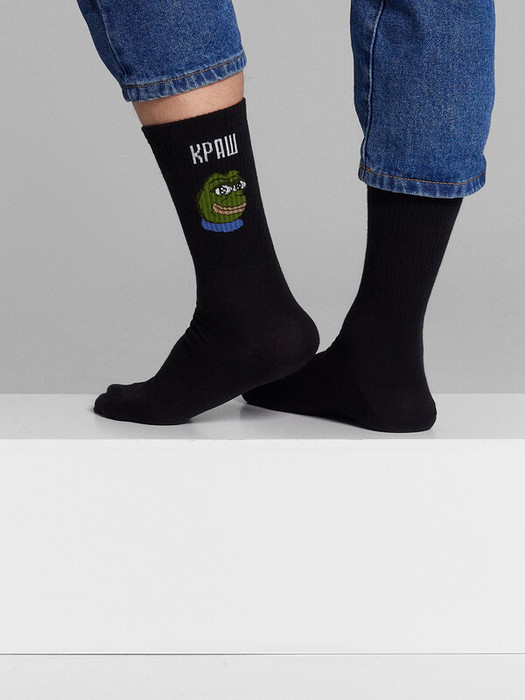 рис.3027 Мужской носок с высоким плотным бортом и рисунком в виде надписи "КРАШ".