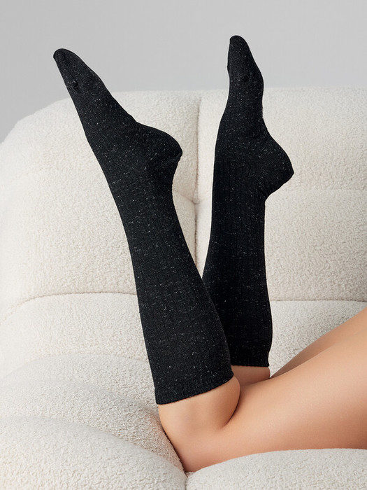 рис.3370 Женские, классические носки с рисунком в виде перекидного переплетения (лапша 5:1) из смешанной пряжи с содержанием шерсти и льна.