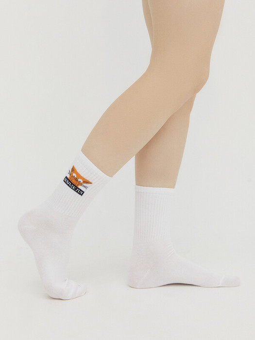 рис.2670 Женский носок с  высоким плотным бортом и рисунком в виде котика с надписью.