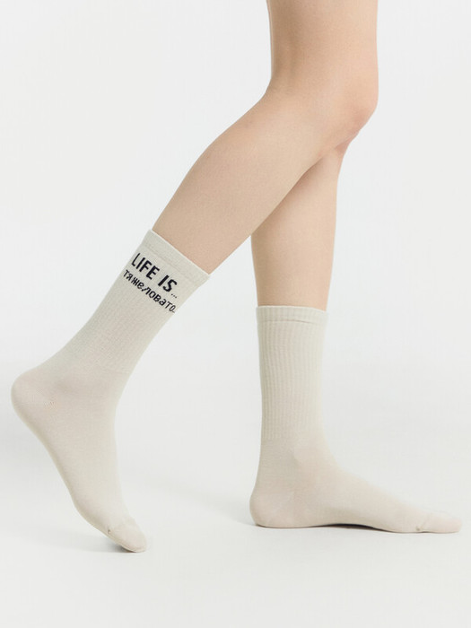 рис.2693 Женский носок с  высоким плотным бортом и рисунком в виде надписи "LIFE is тяжеловато".
