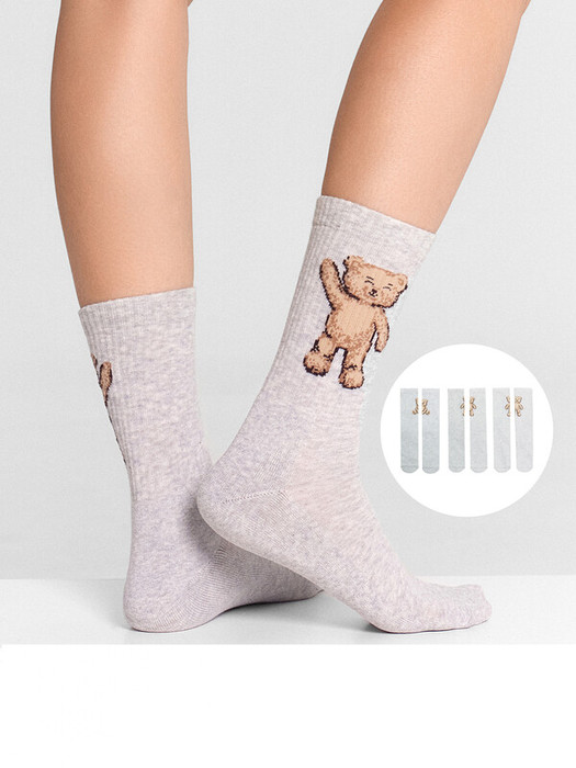 рис.2530 Мультипак из 3-х пар классических женских носков с высоким плотным бортом и рисунком в виде медвежат. Составляющие: 287A-2531, 287A-2532, 287A-2533