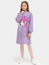 Платье  для девочек полуприлегающего силуэта. Верх платья из трикотажного кулирного полотна .Горловина круглая окантована обтачкой из рибаны. Рукав, втачной короткий.