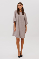 Платье длиной выше колена. Подгибка низа и рукава сделана потайным стежком.