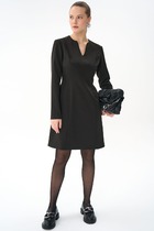 В правом боковом шве обработан разрез. Низ платья асимметричный.