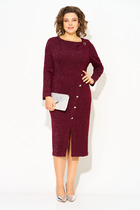 Платье прямое свободное, длиной миди. Горловина V-образной формы со стояче-отложным воротником. Плечо слегка спущено, рукав втачной, длинный. По низу рукавов отрезные манжеты с разрезами. Центральная застежка на петли и пуговицы. В боковых швах обработаны карманы. По бокам внизу обработаны разрезы. Нижний срез платья обработан швом вподгибку с закрытым срезом.