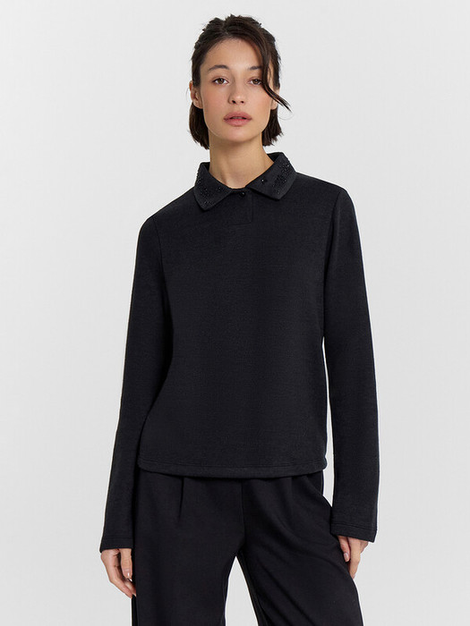 Поло выполнено из трикотажного полотна интерлок. Поло прямого силуэта. Воротник стояче-отложной. Шов втачивания воротника закрыт бейкой из кулирки. Горловина с застежкой поло (на пуговицу на ножке D10мм). Рукава втачные, длинные. Нижний срез поло и рукавов обработан швом вподгибку на 2х игольной плоскошовной машине.