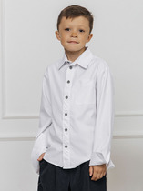 Сорочка верхняя для мальчиков прямого силуэта с воротником. По переду обработана застежка на пуговицы и петли. Диаметр пуговицы 1 см, 4 прокола. Рукава короткие, втачные, слегка спущены. На спине кокетка. Нижние срезы изделия и рукавов обработаны швом в подгибку.