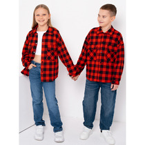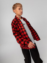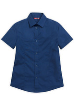 Сорочка верхняя для мальчиков прямого силуэта с воротником. По переду обработана застежка на пуговицы d=10mm и петли. Рукава короткие, втачные, слегка спущены. Нижние срезы изделия и рукавов обработаны швом в подгибку.