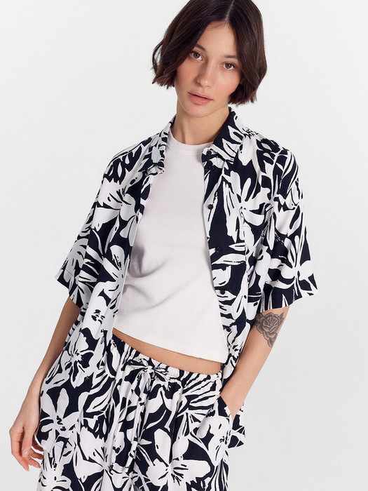 Горловина круглой формы с рубашечным воротником. Плечо спущено, пройма углублена. Рукав втачной, короткий. Низ рубашки прямой.