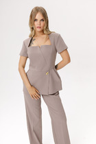 Рубашка свободного силуэта, с отложным воротником. Рукав втачной короткий, линия плеча немного спущена, рукав обработан вподгибку. Рубашка с центральной застежкой с петлями и пуговицами. Низ застрочен швом в подгибку.