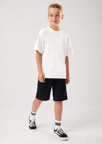 Шорты для девочек короткие. Пояс отрезной, с втаченной эластичной тесьмой RV30, образующей сборку. На задних деталях шорт клапаны имитирующие карман, с закрепкой посередине. Низ шорт обработан швом в подгибку.