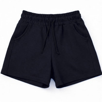 Шорты для девочек свободного силуэта из ткани. Посадка высокая. На детали переда карманы с отрезным бочком. Пояс отрезной с эластичной тесьмой RV40 внутри, на поясе пробиты петли и вставлен шнур из основного полотна. Шов втачивания пояса распошит. Длина выше колена. Низ обработан швом вподгибку с закрытым краем.