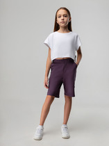 Шорты карго прямого силуэта из текстильного полотна. Посадка средняя. Длина выше колена. Пояс цельнокроеный  с эластичной тесьмой и шнуром внутри. По поясу выполнены три декоративные строчки. На передних деталях брюк настрочен один карман с клапаном, обработаны карманы с наклонным входом от боковых швов. Низ изделия обработан швом в подгибку.