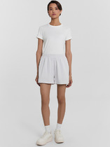 Шорты женские из ткани свободного силуэта. Пояс широкий из основного полотна с эластичной тесьмой внутри. По поясу проложены отделочные строчки.