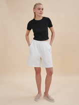 Шорты 132359-1 на поясе пробиты петли и вставлен шнур круглый двойной с термоусаживаемой трубкой на конце.