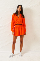 Шорты широкие, короткие. Посадка высокая. Пояс отрезной с эластичной тесьмой внутри (внутр. 60мм 60RV). Шорты без боковых швов. Нижние срезы обработаны швом вподгибку
