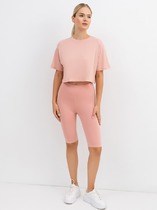 Мини-шорты свободного силуэта из легкого трикотажного футера. Высокая посадка на талии, эластичная тесьма в поясе, регулировочный шнурок-завязка и удобные боковые карманы – комфортный минимализм!