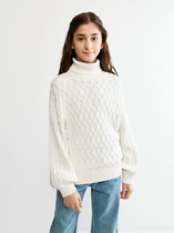 Джемпер свободного силуэта. Рукава длинные, втачные. Линия плеча спущена. Перед и спинка цельнокроенные. Горловина круглой формы обработана обтачкой из рибаны. По низу рукавов и джемпера притачены манжеты и пояс из рибаны.