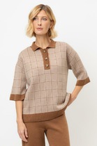 Низ джемпера фигурный и укорочен по длине .