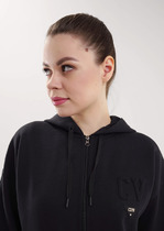 в рамку. Низ толстовки свободный, обработан швом подгибкой с кулиской и регуляторами.