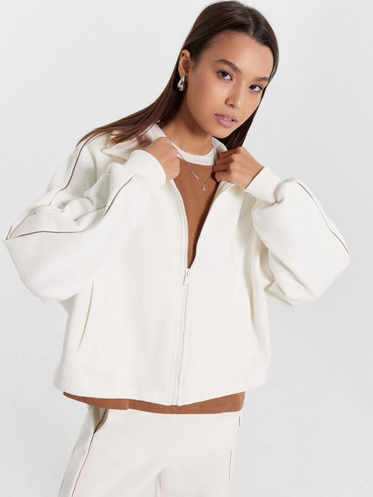 По низу отрезная манжета из рибаны. По плечу и рукаву отрезной лампас из футера,