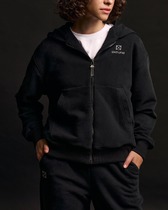 Толстовка женская свободного силуэта. Перед и спинка цельнокроеные. Рукав втачной, длинный, спущенный. По низу изделия и рукавов пояс и манжеты из рибаны. Толстовка с капюшоном и центральной застежкой с молнией (OpenEnd Standart Metal №5, 5,9мм). По центру изделия накладные карманы. Толстовка двусторонняя, боковые швы, швы рукавов и кармана вывернуты наружу.