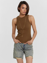 Нижний срез топа обработан швом вподгибку на 2х иглольной плоскошовной машине.