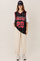 Горловина и проймы окантованы бейками из основного полотна переходящими в бретель.