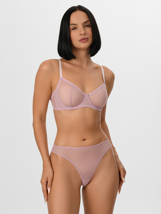 Трусы женские бразилиано с высокой посадкой из кружевного полотна. Передняя деталь цельнокроенная с ластовицей, подкладка ластовицы из кулирной глади настрочная по верхнему краю. Талия и ножки обработаны в два приема жилкой.