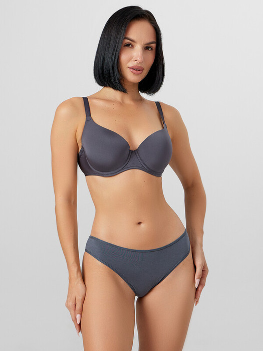 Трусы женские, средняя линия талии, силуэт - бразилиана, выполнены из трикотажного кулирного полотна в сочетании с эластичным кружевом. Передняя деталь цельная. Подкладка ластовицы из основного полотна, отлетная по верхнему срезу. Задняя деталь со средним швом, декорирована эластичным кружевом. В верхней части выполнено декоративное отверстие. Срезы кружева обработаны эл тесьмой 6 мм (жилка тканая Wt4-6 , девсел 13460 W).