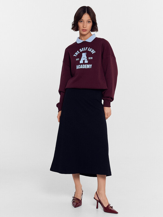 Юбка А-силуэта, длиной миди. Верхний срез обработан швом вподгбку с эластичной тесьмой (внутренняя). На задней детали застрочены вытачки. Нижний срез обработан швом вподгибку.