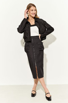 Vilatte Юбка с разрезом из эластичной эко-кожи D26.454 черный