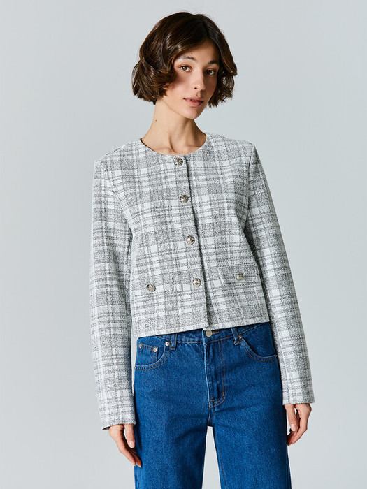 Этот укороченный женский жакет прямого силуэта станет стильным дополнением вашего гардероба. Горловина круглой формы и длинные рукава придают жакету элегантный вид. Застежка на петли и пуговицы обеспечивает удобство, а спереди располагаются клапаны с пуговицами, добавляя изделию изысканности. Для его выполнения использовали материал академик с добавлением люрекса, который придает характерный легкий блеск. Этот жакет идеально подойдет для создания стильных образов, добавляя в ваш наряд нотку изящества и шика.