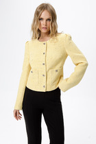 Этот укороченный женский жакет прямого силуэта станет стильным дополнением вашего гардероба. Горловина круглой формы и длинные рукава придают жакету элегантный вид. Застежка на петли и пуговицы обеспечивает удобство, а спереди располагаются клапаны с пуговицами, добавляя изделию изысканности. Для его выполнения использовали материал академик с добавлением люрекса, который придает характерный легкий блеск. Этот жакет идеально подойдет для создания стильных образов, добавляя в ваш наряд нотку изящества и шика.
