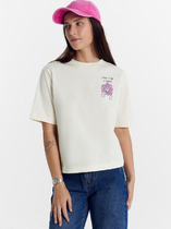 Футболка свободного силуэта из интерлока. Горловина круглой формы, с широкой обтачкой из рибаны. Спущенная линия плеча и углубленные проймы дарят свободу движений. Изюминка футболки – удлиненные рукава, ниже локтя.