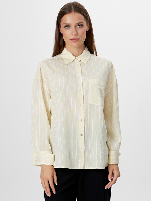 Желтая рубашка в полоску прямого силуэта — это яркий акцент в вашем гардеробе. Удобный прямой крой обеспечивает комфорт и свободу движений, а полосы добавляют образу динамичность и современность. Модель с нагрудным карманом и застежкой на пуговицы сочетает практичность и элегантность.