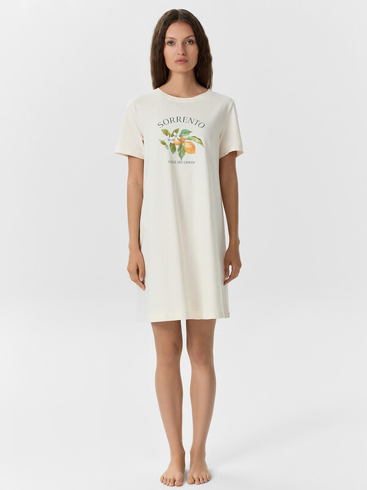 Хлопковая женская сорочка свободного силуэта. Горловина круглой формы. Рукава короткие, линия плеча слегка спущена. Уютный вариант для сна!