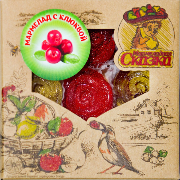 Состав: сахар-песок, патока, клюква, агент желирующий-пектин, регулятор кислотности, кислота лимонная, глазирователь, пчелиный воск