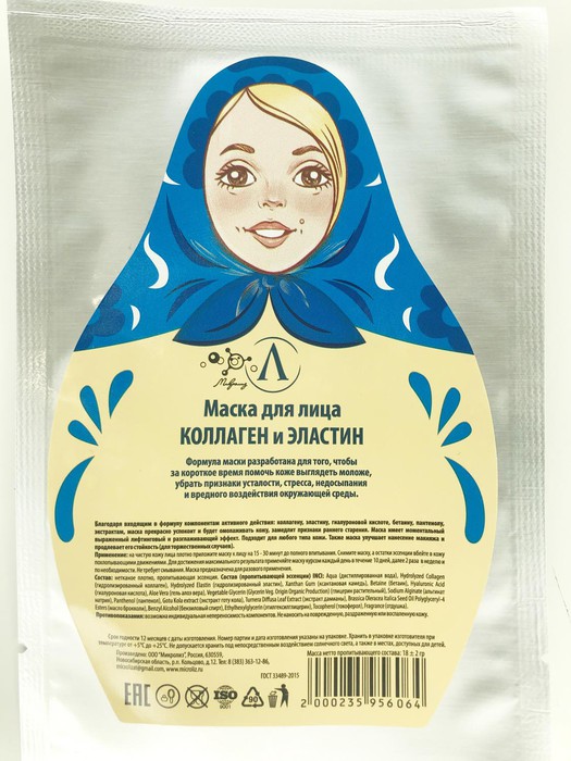 Средний слой кожи (дерма) представляет собой водно-пружинную прослойку, где роль пружин как раз выполняют коллаген и эластин. Причем на долю коллагеновых волокон приходится около 70-80% нагрузки. Молекула коллагена состоит из 19 аминокислот, которые как бусинки соединяются между собой в цепочки. Цепочки очень плотно соединяются и перекручиваются друг с другом, благодаря чему волокно коллагена толщиной всего 1мм может выдержать нагрузку до 10 кг. Волокна в свою очередь образуют сеточку, которая не растягивается, но может изгибаться, удерживая каркас лица в молодом виде. С возрастом волокна коллагена утолщаются и грубеют, теряют эластичность, а потом начинают разрушаться. Эти процессы ускоряются под воздействием изменяющегося гормонального фона, солнца, курения, сахара, свободных радикалов и пр. Но в наших силах помочь организму замедлить эти процессы. Коллаген для изготовления косметики может быть разных видов: - животного происхождения; - гидролизованные протеины пшеницы, напоминающие по структуре коллаген, но таковым не являющиеся; - морской коллаген - самый эффективный и дорогой вид. Научно доказано, что именно морской коллаген способен запускать естественные процессы образования собственного качественного коллагена в организме. Причем, это преимущество относится исключительно к косметическим средствам с коллагеном, не к пищевым добавкам. Именно этот тип коллагена выбрал Микролиз для использования в своих продуктах. Для еще более глубокого проникновения молекул в кожу, мы подвергли коллаген гидролизу, т.е. дополнительно расщепили его на еще более мелкие составные части. Для того, чтобы процесс восстановления дермы был максимально полноценным, мы включили в состав вторую составляющую дермального слоя кожи - эластин. По аналогии с коллагеном молекулы эластина разделены на мельчайшие частицы, способные проникнуть в нужный уровень кожи. Благодаря входящим в формулу дополнительным компонентам активного действия: гиалуроновой кислоте, бетаину, пантенолу, экзотическим экстрактам готу колы и дамианы, а также маслу брокколи маска прекрасно успокоит и будет омолаживать кожу, замедлит признаки раннего старения, а увядающей дерме поможет преодолеть Также маска улучшает нанесение макияжа и продлевает его стойкость (для торжественных случаев). Противопоказания: Возможна индивидуальная непереносимость компонентов. Произведено: ООО “Микролиз” Россия, 630559, Новосибирская область, р.п. Кольцово, д.12. Тел: 8 (383) 363-12-86 microlizat@gmail.com , www.microliz.ru Дата изготовления указана на упаковке. Не допускается хранить под непосредственным воздействием солнечного света, а также в местах, доступных для детей.