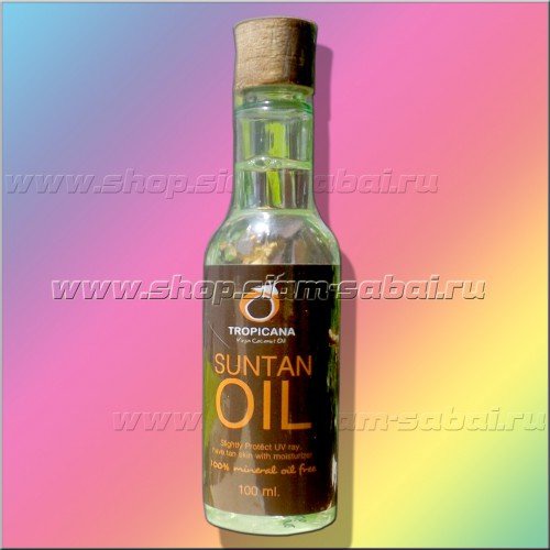 Масло для загара Тропикана Tropicana Suntan Oil Кокосовое масло Suntan Oil специально для получения ровного красивого шоколадного загара от известной тайской косметической компании TROPICANA OIL. TROPICANA OIL — является крупнейшим тайским производителем кокосового масла и косметики на основе кокосового масла. Кокосовое масло для загара Тропикана поможет Вам без особого труда приобрести красивый загар в самое кратчайшее время без риска получить солнечные ожоги. Кокосовое масло Suntan Oil особенно рекомендуется для белокожих людей, которые с трудом загорают до красивого бронзового оттенка. Маслодля загара Тропикана защищает кожу от вредного воздействия ультрафиолетовых лучей, хорошо увлажняет кожу и предохраняет ее от обгорания на солнце, оказывает питательное, разглаживающее и смягчающее действие. Кокосовое масло Suntan Oil не содержит в своем составе минеральных масел и эмульгаторов! В составе масла для загара Тропикана только натуральные, природные ингредиенты, которые питают кожу, защищают кожу от пересушивания при приеме солнечных ванн и получения солнечных ожогов и помогают быстро приобрести коже красивый загар. Состав масла для загара Suntan Oil: Натуральное кокосовое масло Масло сладкого миндаля Масло аргана Подсолнечное масло Алое вера Экстракт томатов Масло для загара, пластиковая бутылочка 100 мл. Производитель: Таиланд, компания TROPICANA OIL Как получить красивый ровный загар: Нанести тонким слоем масло для загара на кожу за 15 минут до начала приема солнечных ванн или перед плаванием, повторно наносить масло Suntan Oil рекомендуется через каждые 2 часа пребывания на солнце. Кокосовое масло для загара Suntan Oil подходит для всех типов кожи. После загара рекомендуется нанести на кожу гель Алое Вера