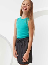 Майка из хлопкового трикотажа, декорированная ярким принтом с пайетками. Свободный крой, круглый вырез горловины.На ребенке представлен размер 110:- Ширина изделия по линии груди 29,5 см- Ширина по низу изделия 40 см- Длина изделия 40 смРазница между размерами составляет 1,5 см.