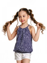 Майка из хлопкового трикотажа, декорированная ярким принтом с пайетками. Свободный крой, круглый вырез горловины.На ребенке представлен размер 110:- Ширина изделия по линии груди 29,5 см- Ширина по низу изделия 40 см- Длина изделия 40 смРазница между размерами составляет 1,5 см.