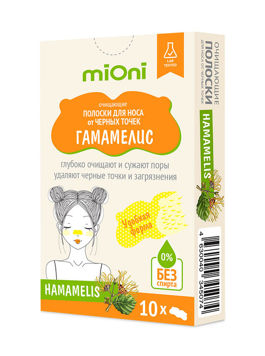 Очищающие полоски для носа «Гамамелис» очищают поры от «черных точек», способствуют снижению выработки себума и сужению пор.