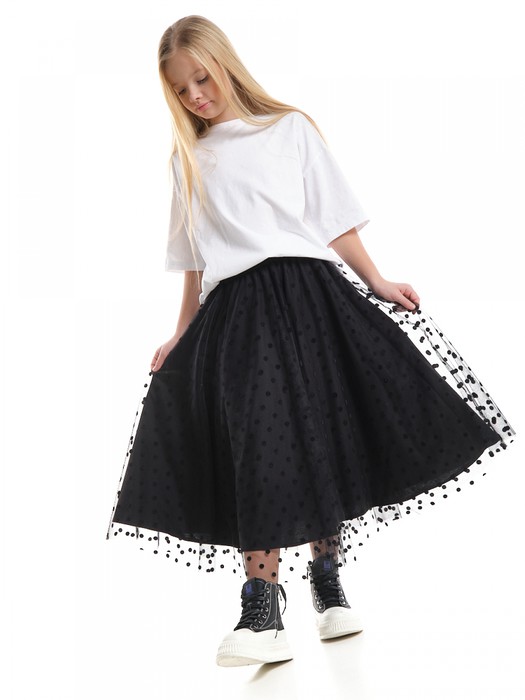 Совместные покупки Пермь Детская одежда Юбки — Mini Maxi Юбка пачка длинная из фатина (128-146см) 22-7608-5(3) черный/горох