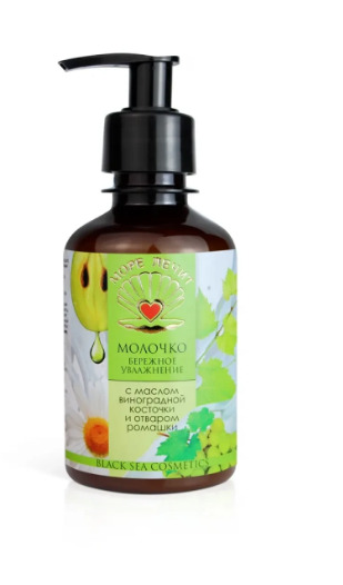 Состав: минеральная вода Цыбанобальского месторождения города Анапы, масло виноградной косточки, отвары ромашки, календулы, лаванды, мацерат черноморской водоросли камки на сафлоровом масле, каррагинан (растительный «силикон», выделяемый из красных водорослей), гуаровая камедь, миндальное молочко, аромамасло ромашки.