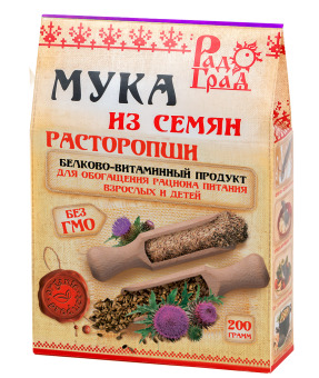 В муке расторопши основным веществом, оказывающим благотворное воздействие на печень, желчный пузырь, желудок и кишечник, является силимарин. Он способствует укреплению клеточных мембран и стимулирует образование новых клеток. В результате, усиливаются процессы желчеобразования и очищения организма от токсинов. Входящие в состав Омега-6 и Омега-9, а также витамин Е, магний, марганец, селен и цинк способствуют снижению уровня холестерина, укреплению сосудов и повышению их эластичности. Отвары на основе муки расторопши рекомендованы для профилактики сахарного диабета, т.к. регулируют выработку инсулина.