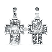 Крест православный из чернёного серебра - Спас Нерукотворный, Казанская Божья Ма