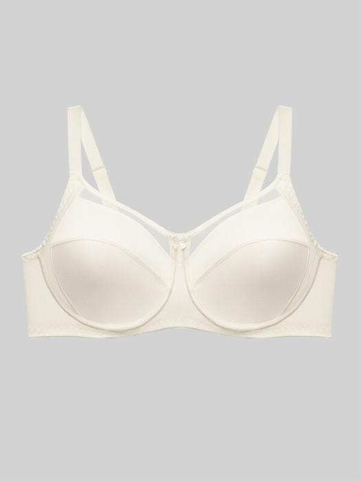 Бюстгальтер с мягкой чашкой и  боковой корректирующей деталью, на каркасах. Внутренняя деталь чашки дублирована хлопком. Высокая центральная деталь усиливают поддержку груди. Бюстгальтер выполнен из трикотажного полотна трилобал*, верхний край чашки декорирован сеткой.