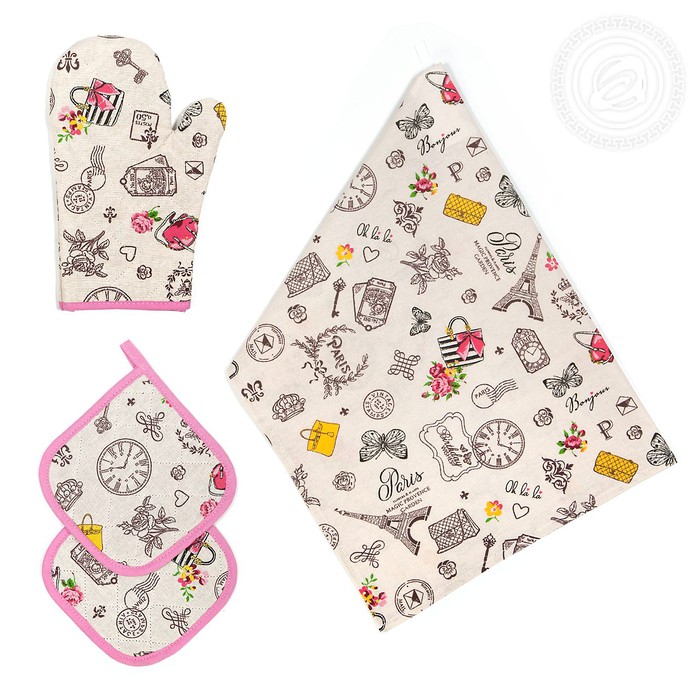 «Мадам» - это новый рисунок на ткани рогожка, который заинтересует смелых личностей. Огромное количество различных элементов изображено на полотне: это и Эйфелева башня, и различные дамские сумочки, и какие-то старинные детали в виде часов или почтовых марок, а также цветы и бабочки. Причем многие предметы выполнены в черно-белом цвете, а некоторые окрашены в ярко-желтый и розовый. Рисунок не выглядит слишком ярко и не режет глаз, а цветные акценты добавляют изысканности.