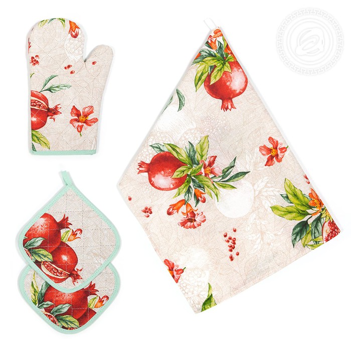 Новый рисунок на ткани под названием «Вкус граната» не оставит равнодушным ни одного гостя. Яркие, сочные гранаты изображены настолько реалистично, что автоматически появляется желание поскорее отведать любимый многими фрукт. Один из них нарисован в разрезе, другой будто лопнул от своей спелости. Зеленые листья и оранжевые цветы вокруг служат дополнительным украшением рисунка. Светло-бежевый фон только подчеркивает красоту каждой детали, а белые пятна создают полное ощущение, будто фрукты перемещались по полотну